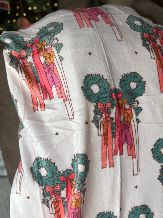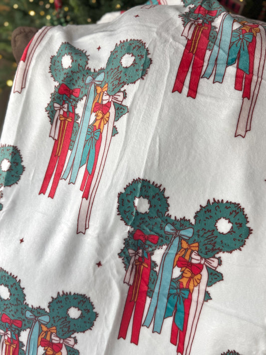 READY TO SHIP - MOUSE WREATH WITH TRADITIONAL COLOR WHITE BACKGROUND - MINKY BLANKET 50x60"